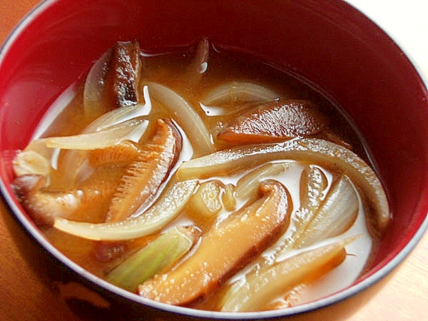 大洲産原木乾しいたけ たつみ麦みそ 甘口 粒で 乾しいたけと新玉ねぎの味噌汁 Jacaranda Recipe